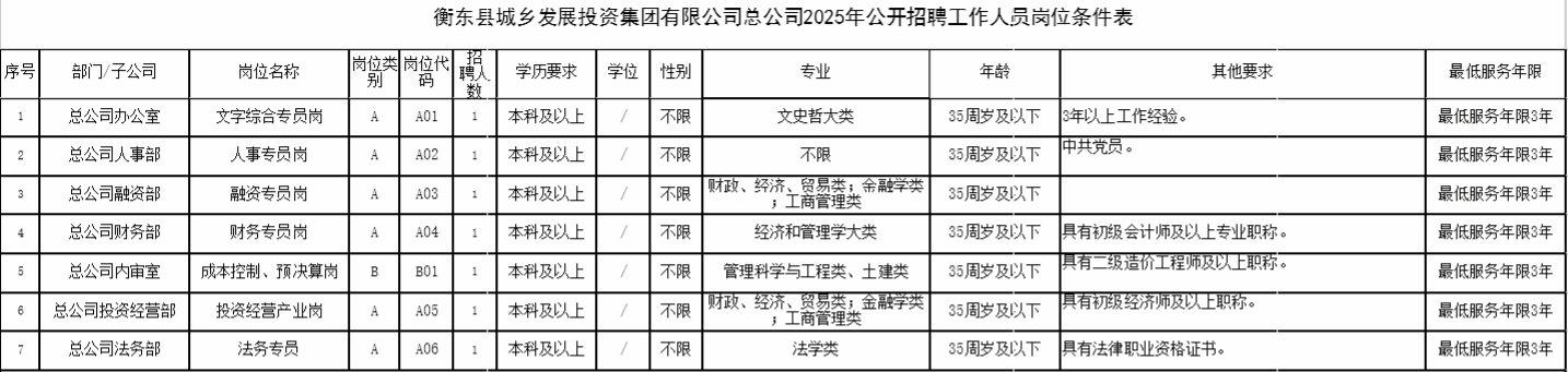 2.报名时间及地点:2025年12月24日—2025年12月30日(工作日上午8:30—12:00,下午14:30—17:30,假期除外),地点设在衡东县城乡发展投资集团人事部215室(衡东县河西安置房四期发改局隔壁)